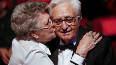 El director y productor Mariano Ozores, Goya de Honor, saluda a la actriz Pilar Bardem. Reuters