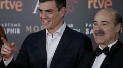 El presidente de la Academia de Cine, Antonio Resines (c), y el líder del PSOE, Pedro Sánchez. Reuters