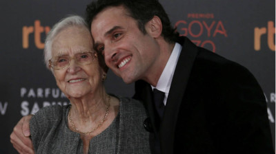 El director de A cambio de nada, Daniel Gúzman, acompañado de su abuela Antonia . Reuters