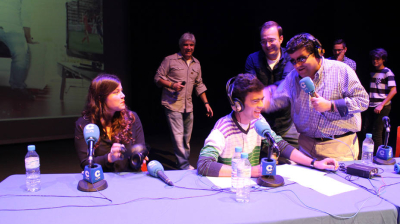 Otro de los momentos divertidos de la noche fue cuando 5 oyentes subieron al escenario para el debate de los jueves y el Grupo Risa montó el taco