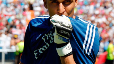 Keylor ya se besa el escudo (realmadrid.com)