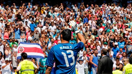 Muchos costarricenses abarrotaron la grada baja del Fondo Norte para recibir a su compatriota (realmadrid.com)