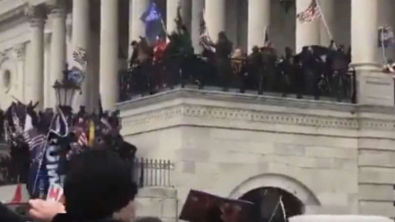 Hace unos minutos, un grupo de manifestantes ha roto cuatro cordones policiales que había delante del Congreso y han logrado acceder, subiendo las escaleras del Capitolio