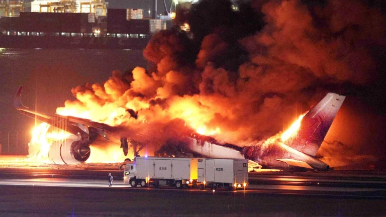 Un avión con 400 personas a bordo se incendia tras aterrizar de emergencia en el aeropuerto de Tokio