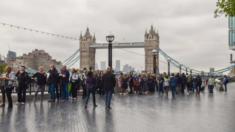 Miles de personas han pasado la noche a la intemperie para mantener su puesto en la cola, que va desde el palacio de Westminster hasta la playa de Bermondsey, según los datos que ofrece el Ejecutivo británico en tiempo real sobre el estado de la fila para dar idea de dónde tienen que colocarse quienes quieran incorporarse e intentar entrar a la capilla ardiente.
