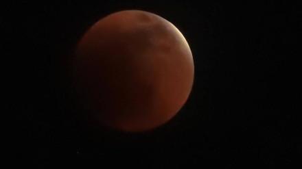 Durante el tiempo que ha durado el eclipse total la Luna no ha estado totalmente oscura sino que ha adquirido un tono rojizo