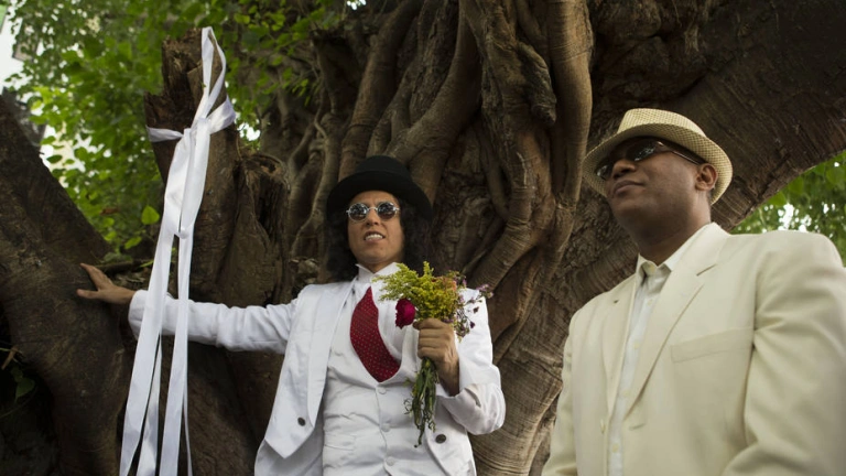 Un actor peruano "se casa" con un árbol en Santo Domingo para denunciar la tala