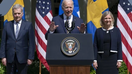Biden recibió en la Casa Blanca a su homólogo finlandés, Sauli Niinistö, y a la primera ministra sueca, Magdalena Andersson, para expresar el "apoyo completo, total e íntegro de Estados Unidos" a las solicitudes de esos países de integrarse en la OTAN, motivadas por la invasión rusa de Ucrania. Finlandia y Suecia "cumplen todos los requisitos para entrar en la OTAN, con creces. Y tener a dos miembros de la OTAN en el norte reforzará la seguridad de nuestra alianza", dijo Biden en un discurso junto a Niinistö y Andersson en la rosaleda de la Casa Blanca.