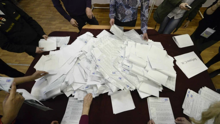 Papeletas de las elecciones presidenciales que se celebran en Rusia.