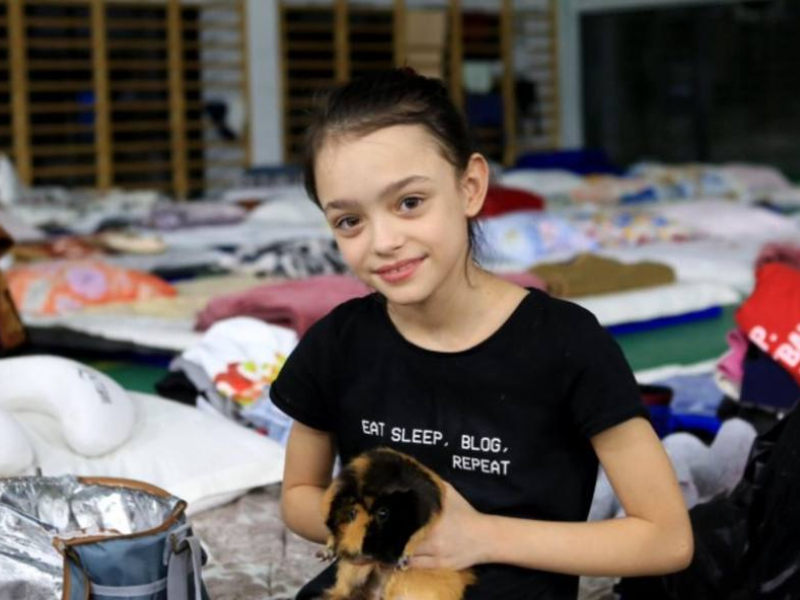 Esta pequeña ha encontrado un amigo en el refugio de la frontera de Siret. Foto Javier García Pérez @Jgpress