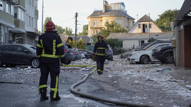 Según el alcalde Klychko, cuatro personas resultaron heridas y han sido hospitalizadas y 20 vecinos de un bloque de viviendas de una de las zonas de la capital afectadas fueron evacuadas tras provocar los restos de un dron, un incendio en el edificio.