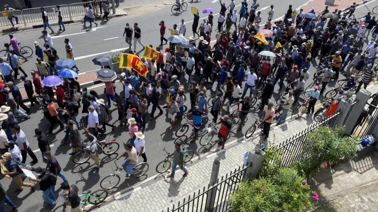 Este sábado miles de personas se han manifestado en Colombo y otras ciudades de Sri Lanka para protestar contra Rajapaksa tras meses de movilizaciones