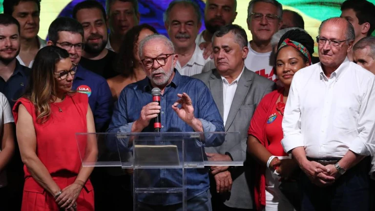 "A partir de enero de 2023, voy a gobernar" para 213 millones de brasileños; "no existen dos Brasiles, somos un único país, un único pueblo, una gran nación", señaló el dirigente progresista, en compañía de sus principales aliados y su esposa, la socióloga Rosângela Silva.