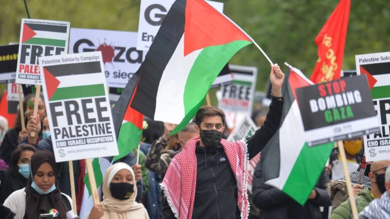 La manifestación ha sido convocada por la Campaña Solidaridad con Palestina, Amigos de Al Aqsa, Foro Paletsino en Reino Unido, Coalición Paremos la Guerra, Campaña para el Desarme Nuclear y la Asociación Musulmana de Reino Unido.