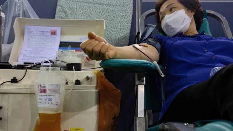 Una enferma de COVID recuperada dona plasma para otros enfermos en Corea