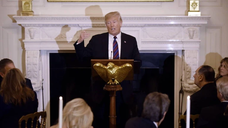 El presidente Donald Trump y la primera dama Melania Trump reciben a líderes evangélicos en una cena