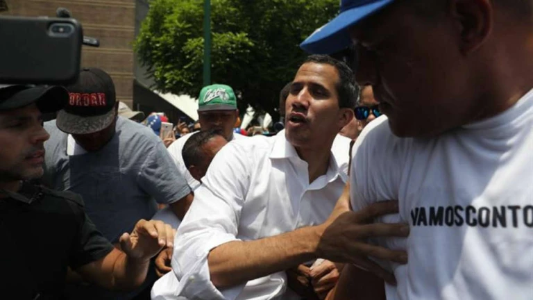 El líder opositor Juan Guaidó, reconocido como presidente interino de Venezuela por medio centenar de países, reapareció este miércoles en Caracas en una manifestación y llamó a un paro progresivo en la administración pública a partir de mañana.