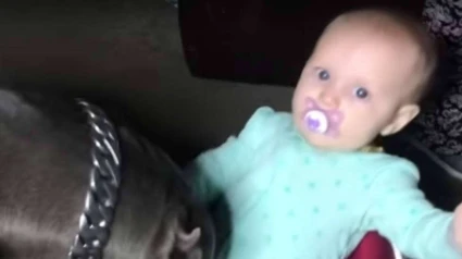Un perro gigante empieza a lamer un bebé y entonces sucede lo inesperado