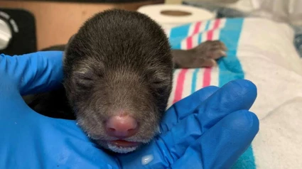 Una noche fría de comienzos de febrero, el perro de una familia del condado de Washington, en el estado norteamericano de Virginia, volvió a casa después de un paseo por la zona. Pero, al contrario que habitualmente, el perro no llegó solo. Junto a él, había un pequeño cachorrito, recién nacido. Sorprendidos ante el hallazgo de este animal y sin saber de dónde lo había sacado el perrito, decidieron llevar al "perrito" al Centro de Vida Salvaje de Virginia.