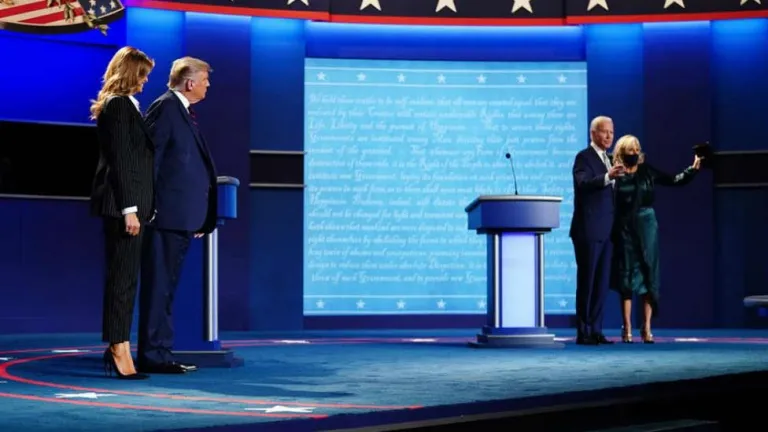 El debate ha comenzado puntual y con los dos candidatos entrando por sectores diferentes al escenario central que se había montado en la ciudad de Cleveland, en el estado de Ohio. Con solo unas decenas de personas de confianza de los dos candidatos, Trump y Biden se han colado en los atriles intercambiar ningún tipo de gesto. Solo Joe Biden ha apretado los puños dirigiéndose a las pocas personas de confianza que estaban presentes en las gradas.