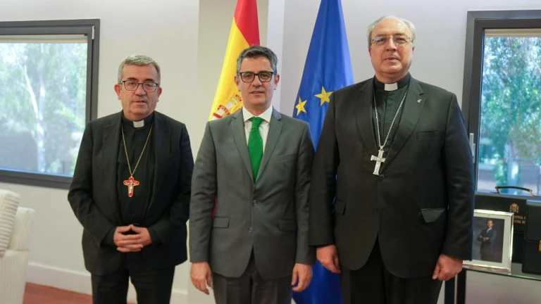 El presidente de la Conferencia Episcopal Española, Luis Argüello, junto con el obispo secretario, César García Magán, mantuvieron ayer por la tarde la primera reunión oficial con el ministro responsable de las Relaciones entre la Iglesia y el Estado, Félix Bolaños, y su equipo. El encuentro se desarrolló “en un ambiente de cordialidad”, según ha manifestado la CEE en un comunicado. Durante la conversación se abordaron algunos aspectos fundamentales de las relaciones entre la Iglesia católica y las instituciones públicas.