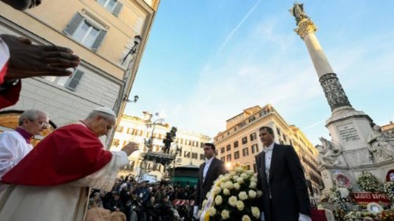 Y después, esta misma tarde, en la tradicional ofrenda floral que tiene lugar en la Plaza de España en Roma, León XIV le ha pedido a la Virgen que cuide de una humanidad que sufre, pero que anhela e invoca justicia y esperanza.