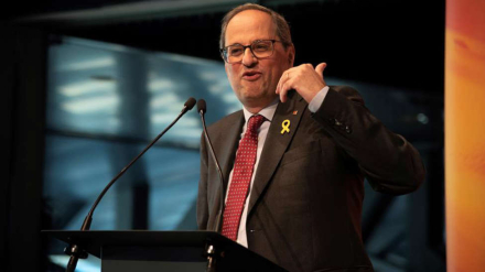 Quim Torra afirmó su empeño de seguir defendiendo los lazos amarillos en edificios públicos