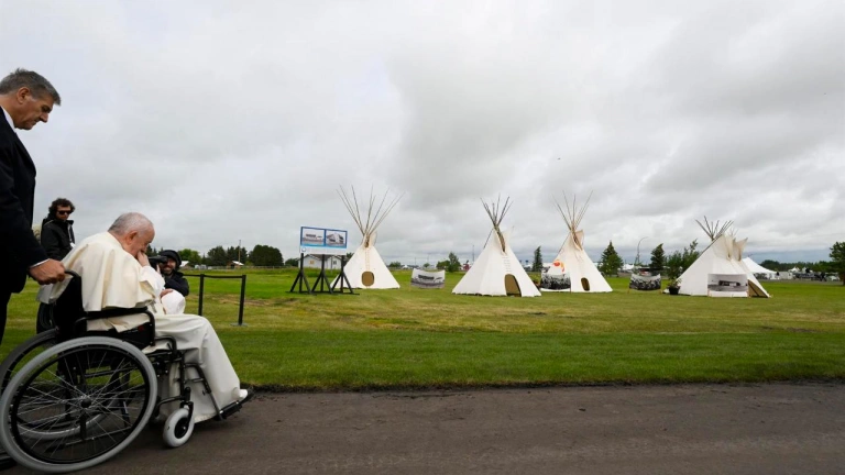 La segunda jornada del viaje del Papa a Canadá ha estado marcada por la festividad de san Joaquín y santa Ana, el día de los abuelos. Sus figuras han sido protagonistas de sus palabras, tanto en la celebración eucarística que ha tenido lugar en el Commonwealth Stadium como en el encuentro con las comunidades indígenas, a orillas del lago Santa Ana. Francisco ha recordado que somos hijos de una historia que hay que custodiar, pero que también somos artesanos de una historia que hay que construir, precisamente desde las raíces que nos han sido legadas, desde el fuego que se nos ha regalado y que ahora, nosotros, tenemos la responsabilidad de avivar.