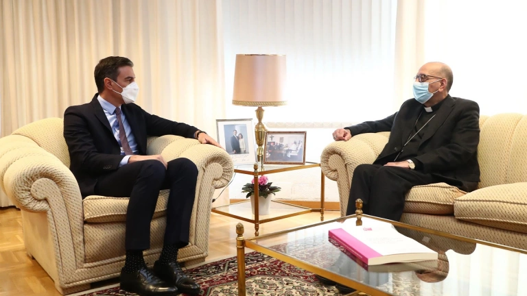 El cardenal Juan José Omella ha recibido esta mañana en la sede de la Conferencia Episcopal al presidente del Gobierno en un encuentro de trabajo