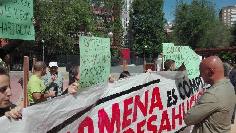 Lo han hecho con pancartas en mano donde se leía, por ejemplo, "Botella desahuciaba, Carmena también", "No toleramos ni un desahucio más" o "Ni casas sin gente ni gente sin casas”. Todo acompañado con silbidos y gritos contra la alcaldesa.