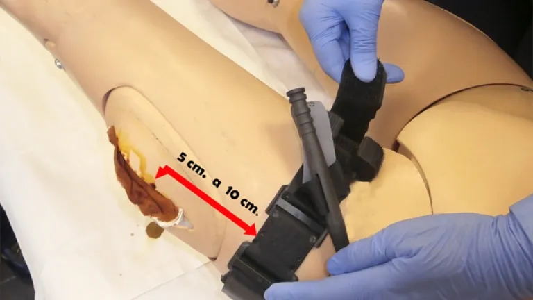 Ervigio Corral, responsable de capacitación del Samur-Pc, explica la importancia de practicar un torniquete