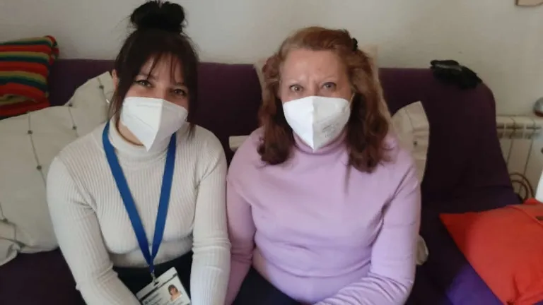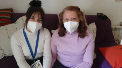 María Jesús junto a Noelia su integradora social. Dice que ha vuelto a sonreir