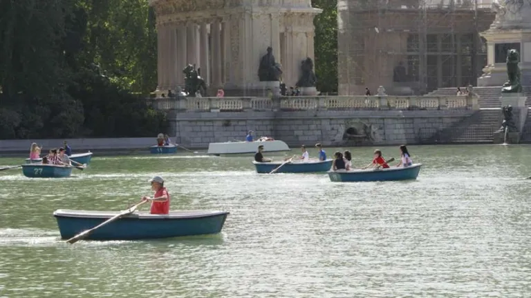 Familias con niños y turistas han sido los primeros en coger los remos para estrenar la vuelta de las barcas del Retiro. El embarcadero ha retomado la actividad pero con la necesidad de solicitar cita previa, para un máximo de cuatro personas por barca si son de la misma familia y con turnos establecidos. De 10 a12 y 12 a 14, por las mañanas, y de 16 a 18 y de 18 a 20 horas por la tarde.