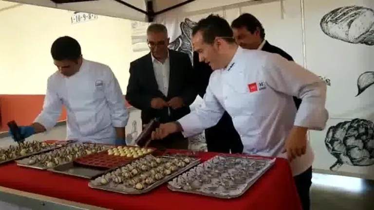 Durante la presentación de “Cénate Las Ventas”, Ivan Muñoz, maestro cocinero galardonado con una Estrella Michelin y actual embajador de la marca M Producto Certificado, ha realizado una demostración de cocina en directo preparando para los asistentes un bombón de queso de Cabra del Guadarrama con vino tinto de la Denominación de Origen de Madrid.