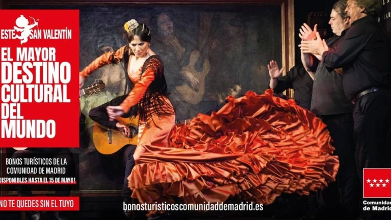 La Comunidad de Madrid ha lanzado una campaña en redes sociales con motivo de la festividad de San Valentín para promocionar sus bonos turísticos, que subvencionan a sus beneficiarios el 50% del gasto en productos y servicios turísticos y culturales hasta una cuantía máxima de 600 euros.
