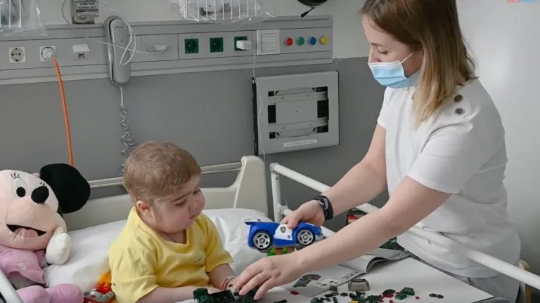 Hace unos meses, recibió un trasplante de médula. Pero con una guerra y los bombardeos encima, difícil que reciba todos los cuidados que necesita. Su madre, Katarina, nos ha contado por qué decidieron salir de Kiev. "Los médicos le mandaron a hacer unos tratamientos complicados, con células madre que ya pondian hacer y por ello tuvieron que irse":