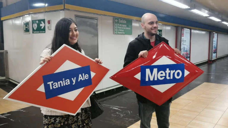 Varios amigos de ambos desplegaban una enorme pancarta que decía: “Tania, ¿quieres casarte conmigo?” La joven emocionada dijo que sí y su historia ha corrido como la pólvora en redes sociales. Por eso Metro de Madrid ha querido hacerles un pequeño homenaje regalándoles dos placas con el logo de Metro, una de ellas con sus nombres.