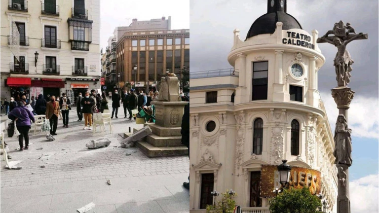 La presidenta de la Comunidad de Madrid, Isabel Díaz Ayuso, denunciaba en la noche de este sábado el ataque a lugares de culto y a lo que la dirigente madrileña señalaba “los valores y sensibilidades”. “Unos vándalos han destrozado el Cruceiro de la Plaza de Benavente de Madrid”.