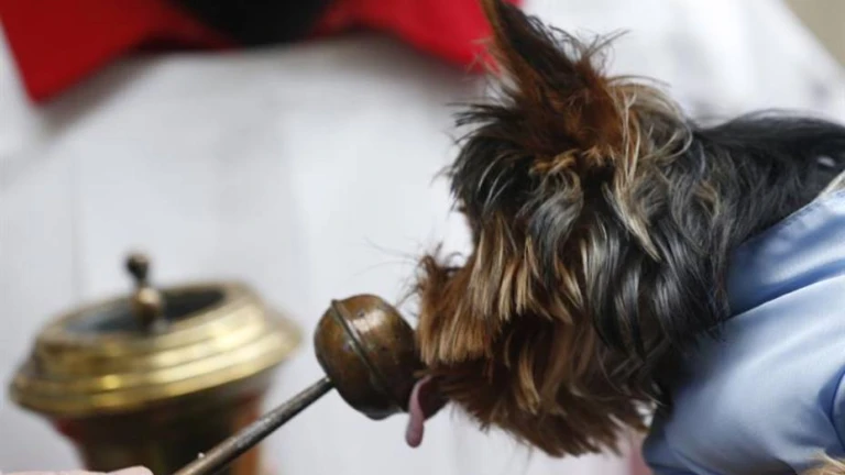Maricarmen ha acudido por primera vez a la bendición con su mascota, Lola, una carlina, ya que son "familia" desde el pasado Día de Reyes y han querido ser bendecidas para celebrar "muchos años de amor juntas". Algunas mascotas han recibido la bendición con más gusto que otras, como el mini pincher de Carla que, en cuanto le han caído las gotas de agua bendita del hisopo, no ha dejado de ladrar.