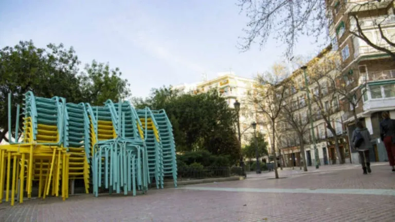 Mucho desconcierto y resignación. Alguna que otra sorpresa. Eso es lo que reina entre los vecinos de la Plaza de Olavide, en el barrio de Chamberí. A partir de las 00:00 del lunes 19 de abril y hasta las 00:00 horas del lunes 3 de mayo, se cerrará perimetralmente. Es decir, no podrás ir o salir sin causa justificada. Aquí hay mucho tráfico de gente, especialmente el fin de semana: muchos jóvenes, muchas familias y muchos bares con terraza.