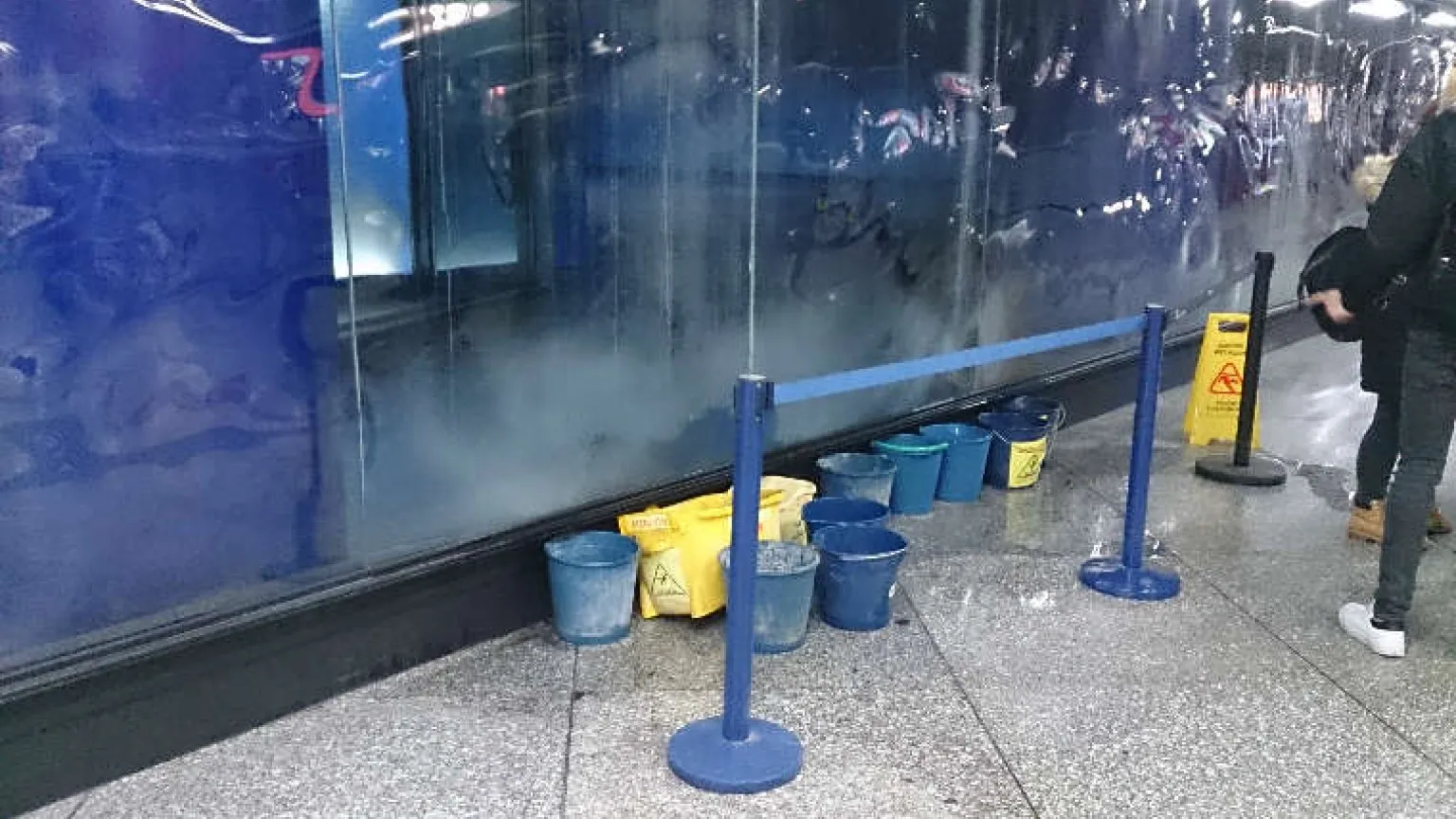 Las precipitaciones dejan el monumento a las víctimas del 11-M encharcado y lleno de goteras