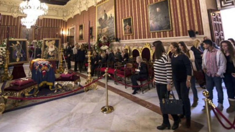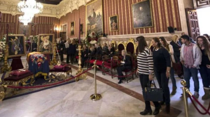 La capilla ardiente con los restos mortales de la duquesa de Alba, instalada en el Salón Colón del Ayuntamiento de Sevilla, ha cerrado sus puertas poco antes de las once de la noche, después de que hayan pasado por ella 80.000 personas.