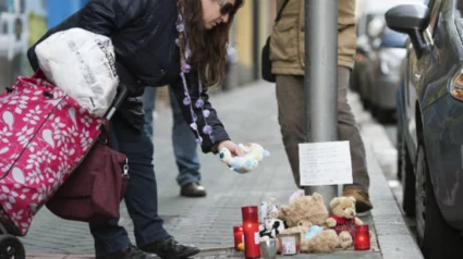Los vitorianos dejan mensajes, velas y peluches en el lugar donde cayó la niña de 17 meses. EFE