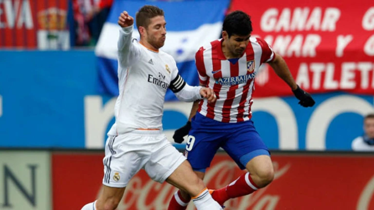 Jugada en la que Diego Costa vio la tarjeta amarilla ante el Real Madrid. Reuters.