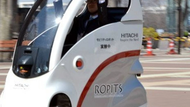 La empresa Hitachi ha desvelado un prototipo de vehículo eléctrico dirigido a la tercera edad y a personas con problemas de movilidad que circula por la acera y que tras introducir unas coordenadas lleva al ocupante a su destino.