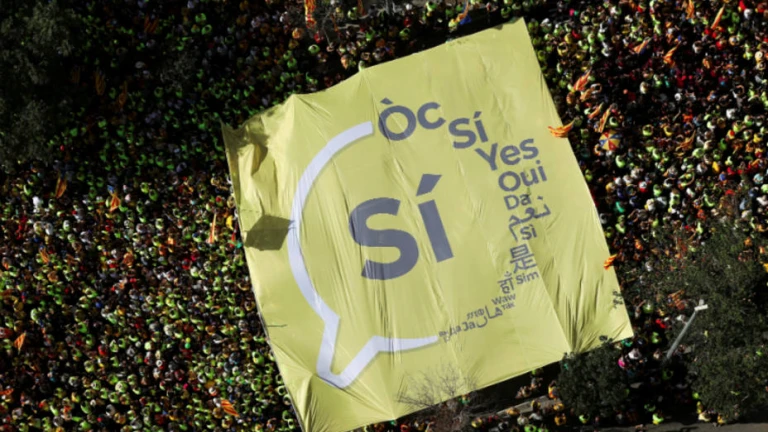 Una de las pancartas de la Diada. REUTERS