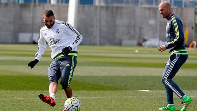 Benzema junto a Zidane en la sesión de este martes. realmadrid.com