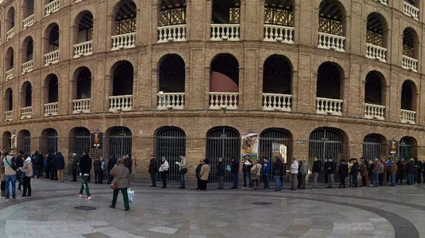 La colas ante las taquillas han dado la vuelta al coso valenciano en el primer día de venta de entradas. TESEO COMUNICACIÓN