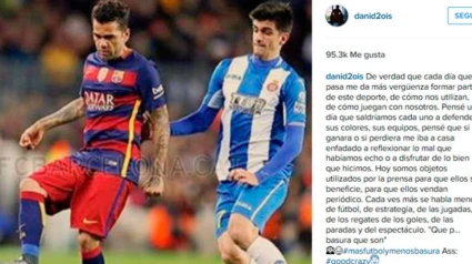 "El jugador del primer equipo del FC Barcelona Dani Alves ha publicado hoy en Instagram un texto muy crítico con los medios de comunicación hasta llegar a utilizar expresiones ofensivas.