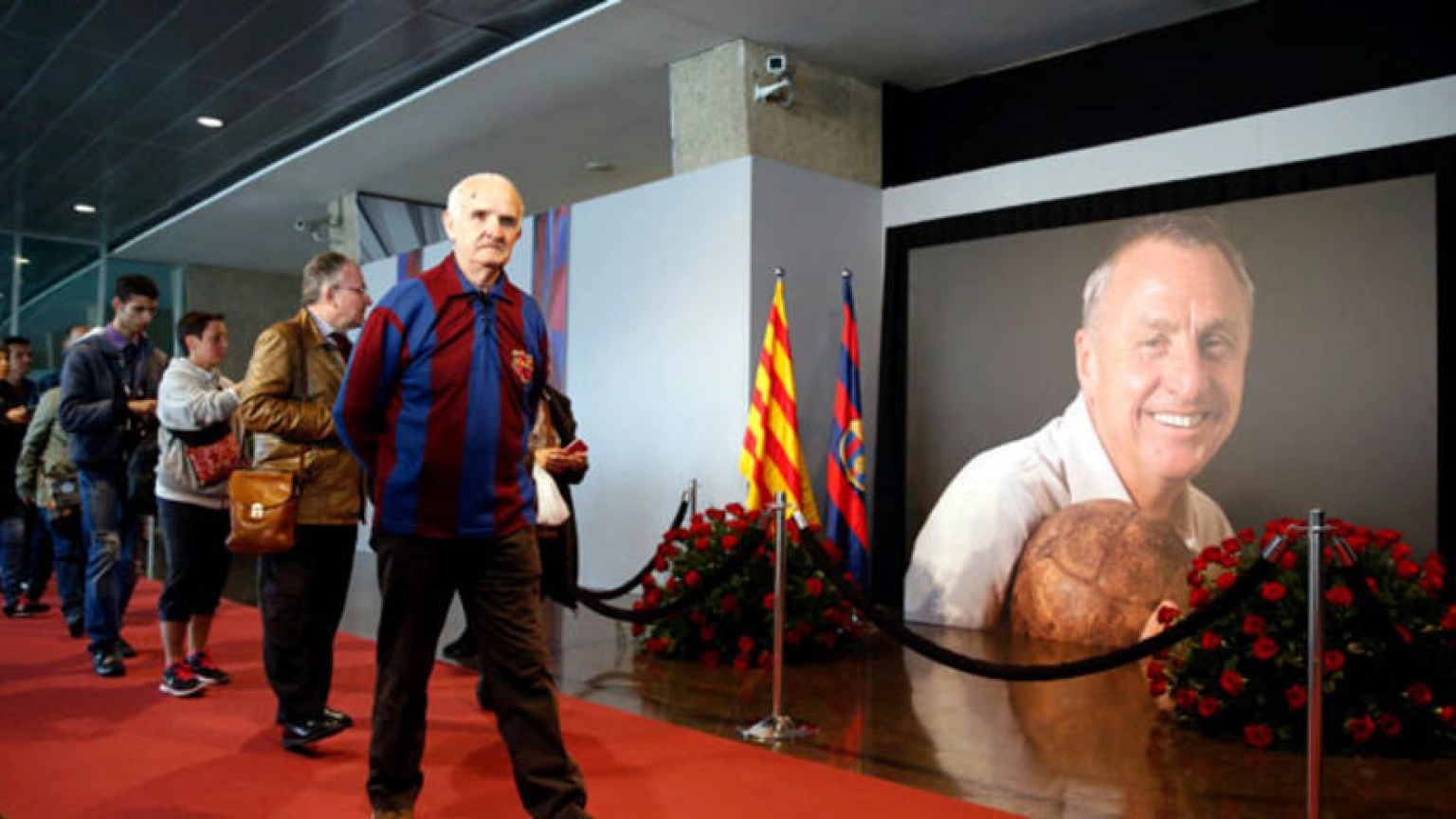 El barcelonismo en particular, y el fútbol, en general, ha empezado a despedirse de Johan Cruyff, cuya figura ha congregado a más de 15.000 seguidores en el Camp Nou en el espacio de condolencias habilitado por el club y que se mantendrá abierto hasta el próximo martes. Culés de toda edad y condición, de aquí y de allá, conocidos y anónimos, todos quisieron rendir el último tributo a Cruyff, fallecido el pasado jueves en Barcelona a causa de un cáncer pulmonar que acabó con su vida a los 68 años. Puntualmente abrió las puertas el Camp Nou a las diez de la mañana y el goteo de asistentes fue continuo. En el vestíbulo de la tribuna superior, una imagen de Cruyff con un balón de cuero antiguo y una eterna sonrisa recibía a los seguidores. Rosas granas; un escudo del club con un crespón negro y una enorme inscripción: "Gràcies, Johan", presidiéndolo todo. Abrazos, lágrimas y emocionadas despedidas individuales frente a la foto de Cruyff, el personaje más influyente de la historia del barcelonismo. Notables del mundo del deporte y de la sociedad civil catalana, también de clubes de Primera como el Real Madrid, representado en la figura de su presidente Florentino Pérez, el Espanyol, en la figura de su técnico Constantin Galca, o el Valencia. El presidente del Barcelona, Josep Maria Bartomeu, es quien ha inaugurado el espacio de condolencias. Le habrá quedado al dirigente azulgrana el sabor agridulce de no haber podido presentar en sociedad el acuerdo alcanzado por la Fundación Johan Cruyff, la Obra Social La Caixa y la Fundación del Club. Para entonces la salud del holandés ya era muy delicada. Bartomeu ha dicho que es "imposible entender el Barça" sin la figura de Cruyff. "Cruyff es el maestro, la persona que nos ha dejado este legado en el Barça, un legado espectacular. Cuando llegó como jugador fue un jugador moderno, inconformista, que revolucionó el mundo del fútbol, revolucionó el mundo del Barça tal y como era él y se expresaba en el campo, pero también como entrenador su legado es espectacular", ha dicho Bartomeu. El presidente de la Generalitat, Carles Puigdemont, ha destacado la apuesta de Johan Cruyff por "el talento colectivo que se esfuerza en crear belleza y generar felicidad en su entorno". Se ha referido Puigdemont a elementos importantes en la filosofía de Cruyff como la creación de la belleza o la generación de la felicidad que suponen "una mirada hacia la vida de la que hay que aprender". Una de las notas más emotivas la puso Joan Laporta, amigo personal de Johan Cruyff y a quien tenía como consejero cuando fue presidente del club entre 2003 y 2010. Laporta se fundió en un abrazo con Bartomeu, con quien luchó en la última contienda electoral, y después definió a Cruyff como "un hombre genial", alguien con "una personalidad excepcional, un personaje que revolucionó el fútbol con su manera de entender este deporte y la vida". Florentino Pérez, presidente del Real Madrid, ha considerado que Cruyff es "de esas personas que perduran eternamente". El dirigente llegó al Camp Nou acompañado por el director de relaciones institucionales del Real Madrid, Emilio Butragueño, y de Amancio Amaro. "Son días tristes porque hay personas como Cruyff que no deberían irse nunca", ha asegurado el presidente del Real Madrid en una declaración ante los medios. Se despidieron de Cruyff, los componentes de la plantilla de baloncesto, exjugadores entrenados por el holandés y excompañeros barcelonistas de Cruyff. Durante la tarde y mientras se sucedía el reguero de asistentes, el hijo de Johan Cruyff, Jordi Cruyff, se reunió en las oficinas del club con el vicepresidente social, Jordi Cardoner, para fijar una serie de acciones entre ambas partes que se comunicarán próximamente. Después del primer día de apertura del espacio de condolencias, que se mantendrá operativo hasta el próximo martes, 15.158 aficionados habían acudido a despedirse del 'holandés volador'.